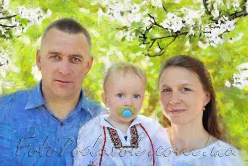 В преддверие юбилея папы, пришла в голову мысль запечатлеть его в красивом военном мундире с его любимыми девочками - женой и внучкой. Выбрала несколько передовых компаний, предоставляющих картину на холсте по фото в образах и сделала запрос. Некоторые менеджеры сразу попросили предоплату за эскиз, что немного смутило, т.к. итоговый результат не обязательно может понравиться, а предоплату не вернут. Еще одна компания, с самой низкой ценой, сразу же прислала макет, но у юбиляра в глаза явно бросалась непропорциональность головы и выбранного туловища, как будто "вырезана" и неаккуратно "приклеена". Исправить эту оплошность им оказалось не по силам. Поэтому рада, что остановила свой выбор именно на этом сайте - он оказался оптимальным по цене и профессионализму! Предоплаты за макет не требовали, из предоставленных фото выбрали оптимальные для картины, подобрали и фон, и багет, которые сразу пришлись по душе. Получился просто ШЕДЕВР! Теперь хочется картину оставить себе! Кроме того, приятным бонусом для нашего ребенка оказался магнитик с получившейся картиной! Теперь у нее есть своя маленькая картинка, и счастью нет предела! Сейчас нет никакой дилеммы, что дарить родным и близким на праздники! Спасибо огромное всему коллективу, особенно талантливым дизайнерам и отличному менеджеру Олечке!