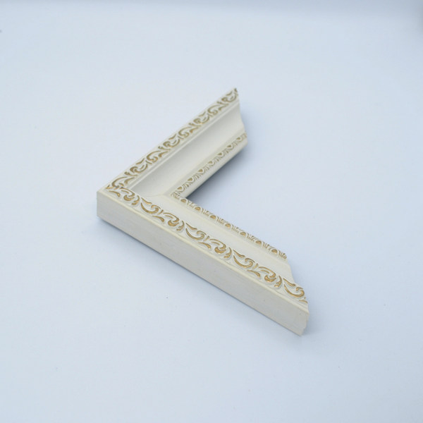 Код багета: 3422-283g Ширина: 3,4 см. Білий кадр з золотим візерунком Ціна багету: 200 грн.\пог.м. см. x см. ДВП Екран (пластик) Ціна готового багету: 0 грн.